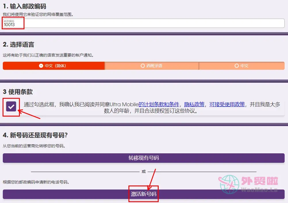 - 这里介绍的是新号码激活,如需携号转网,请转移到另一篇文章:Ultra Mobile PayGo美国电话激活技巧教程 | 携号入网-外贸啦